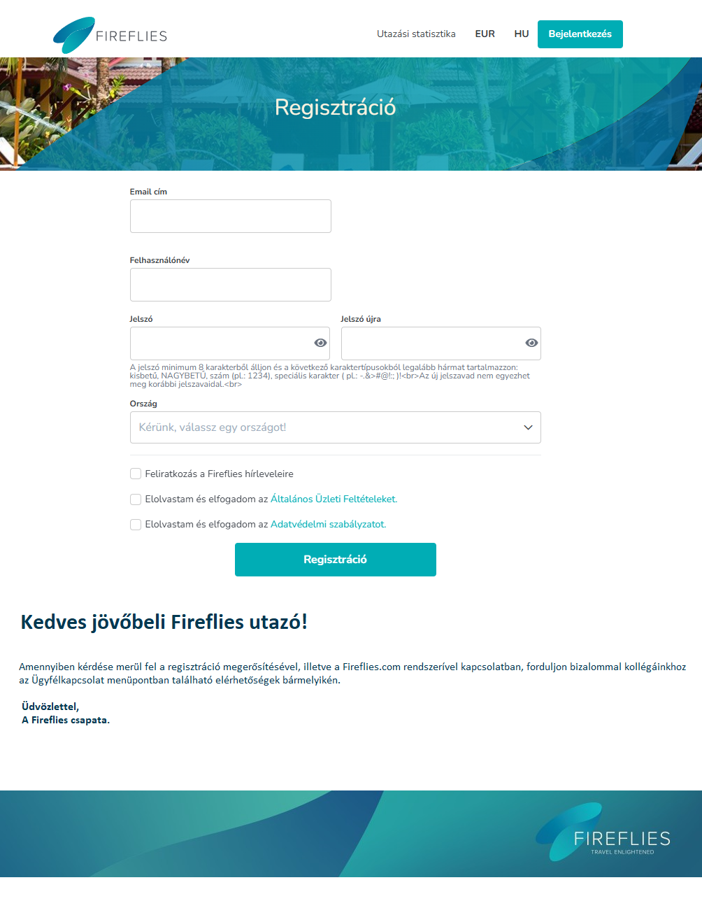 Kérjük, kövesse az emailben közölt instrukciókat. A sikeres regisztráció birtokosának a Fireflies.com adatbázisa egy névre szóló elérési útvonalat generál, mely belépő használatával juthat el a felületkezelő oldalra. Regisztráljon, Nézzen körül az oldalon, és várjuk vissza szeretettel. Amennyiben Ön már egy regisztrát ügyfél, ebben az esetben a sikeres regisztráció menüpontban találhatóak vonatkoznak önre.