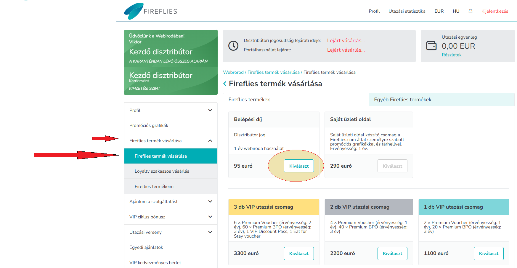 1/ 4,- A bal oldalon keresd ki a Fireflies termék vásárlása menüpontot. Két kattintásra vagy a webshop oldaltól. Katints kétszer a szövegrészre (-Fireflies termék vásárlása-) és azonnal meg is jelenik a Fireflies.com termékeket tartalmazó felület. Ebből a kínálatból a Belépési díj nevű ablakban a Disztribútor-i jogot tudod magadnak megvásárolni. Valójában a Fireflies.com oldal nem más, mint egy DISZTRIBÓCIÓ. A szolgáltatás díját BANK kártyás fizetés által tudod rendezni. Pont úgy működik, mint az összes többi szolgáltatónál. Rá kattintasz a –Kiválaszt– gombra, s követed az utasításokat.