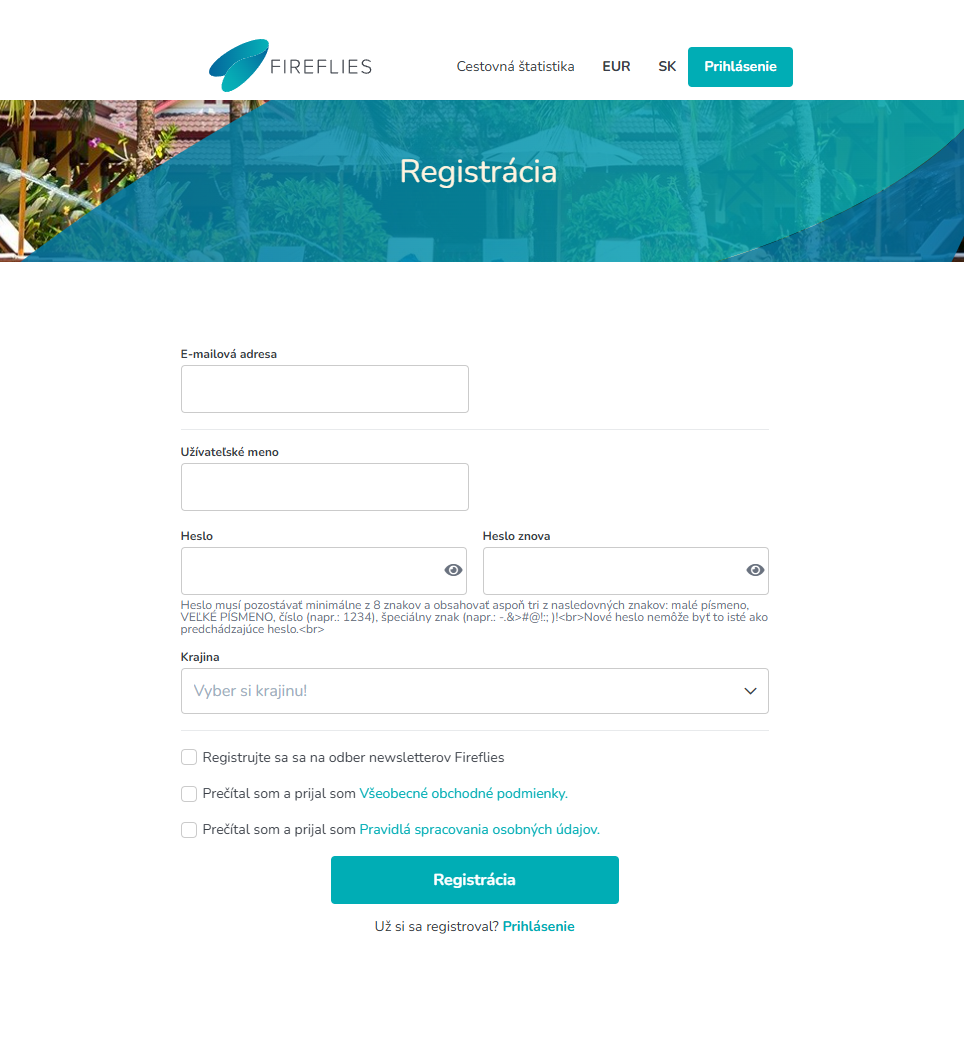 - Pred pokračovaním na stránke vykonajte registráciu kliknutím na tlačidlo: